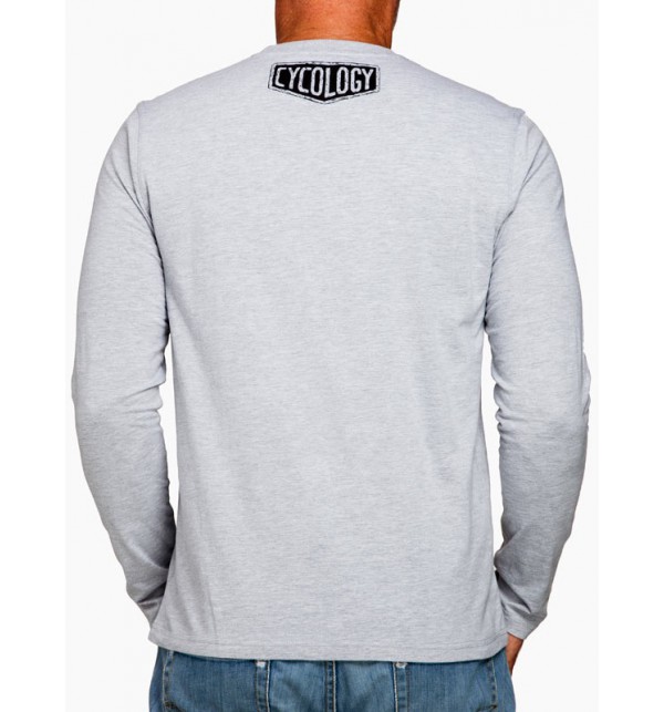 Pánské šedé tričko s dlouhým rukávem vyrobené z kvalitní měkké bavlny, ve kterém se budete cítit pohodlně celý den. Tričko je zdobené originálním potiskem ve stylu Cycology designu s motivem cyklistiky. Jedinečný kousek.